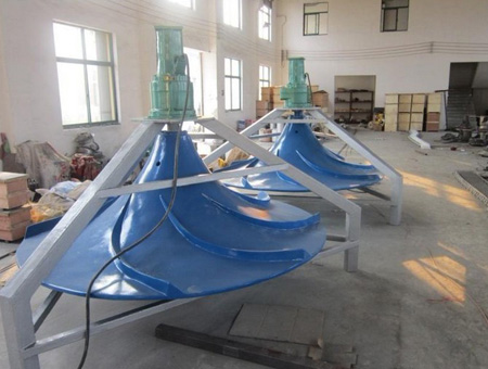結(jié)構(gòu):多曲面攪拌機(jī)由傳動部件、葉輪、底座、吊裝系統(tǒng)及電控組成。
